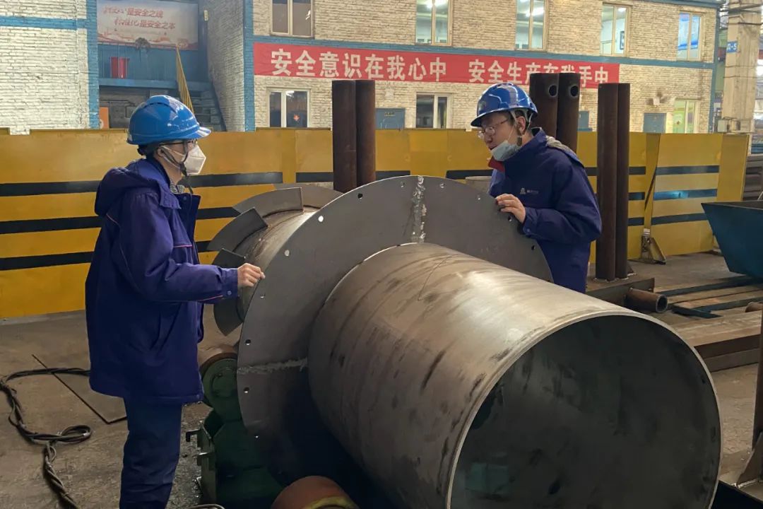 龙江化工有限公司20万吨/年纯苯项目热联合进料换热器,采用霍尼韦尔UOP公司甲苯定向生产苯产品工艺,为国内首套。此换热器采用全不锈钢结构,筒身选用厚壁不锈钢锻件,部分锻件是公司首次应用或首次生产。接到任务后,辅机容器工艺室党员突击队关庆鹤、杜鑫、廉松松迅速制定工艺方案,瞄准制造难点及关键控制点,积极与相关单位沟通,配合完成提前投料工艺,持续改进优化工艺,组织工艺评审,完善制造流程,对分厂进行技术交底。原产品结构需要采用盲穿管生产模式,存在质量风险。工艺部联合设计部门优化产品结构,简化工艺流程,实现管程、壳程并联生产,穿管明穿,一次套装成功,保质保量完成国产化首台龙江化工纯苯项目进料换热器。