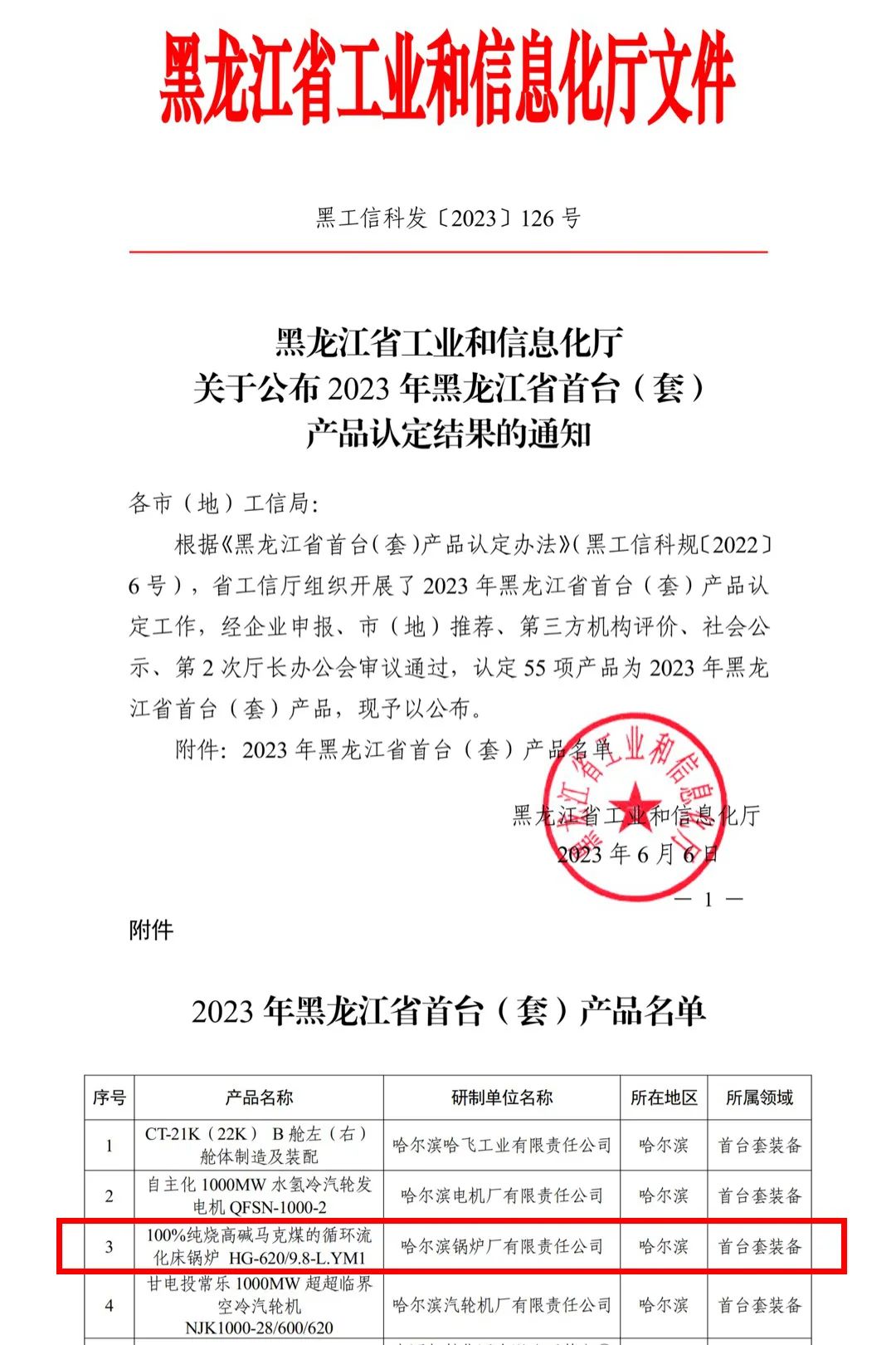 日前,黑龙江省工信厅公布了2023年黑龙江省首台(套)产品评定结果,哈电锅炉研发的“100%纯烧高碱马克煤的循环流化床锅炉”项目成功获评。