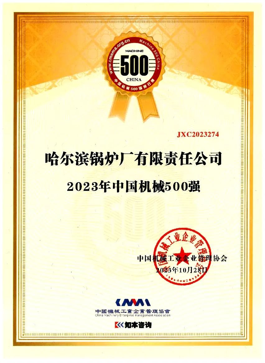 日前,2023年世界一流企业暨中国机械500强研究报告发布会在贵州贵阳隆重举行。大会公布了“中国机械500强”榜单,哈电锅炉成功登榜,实现连续多年入围。