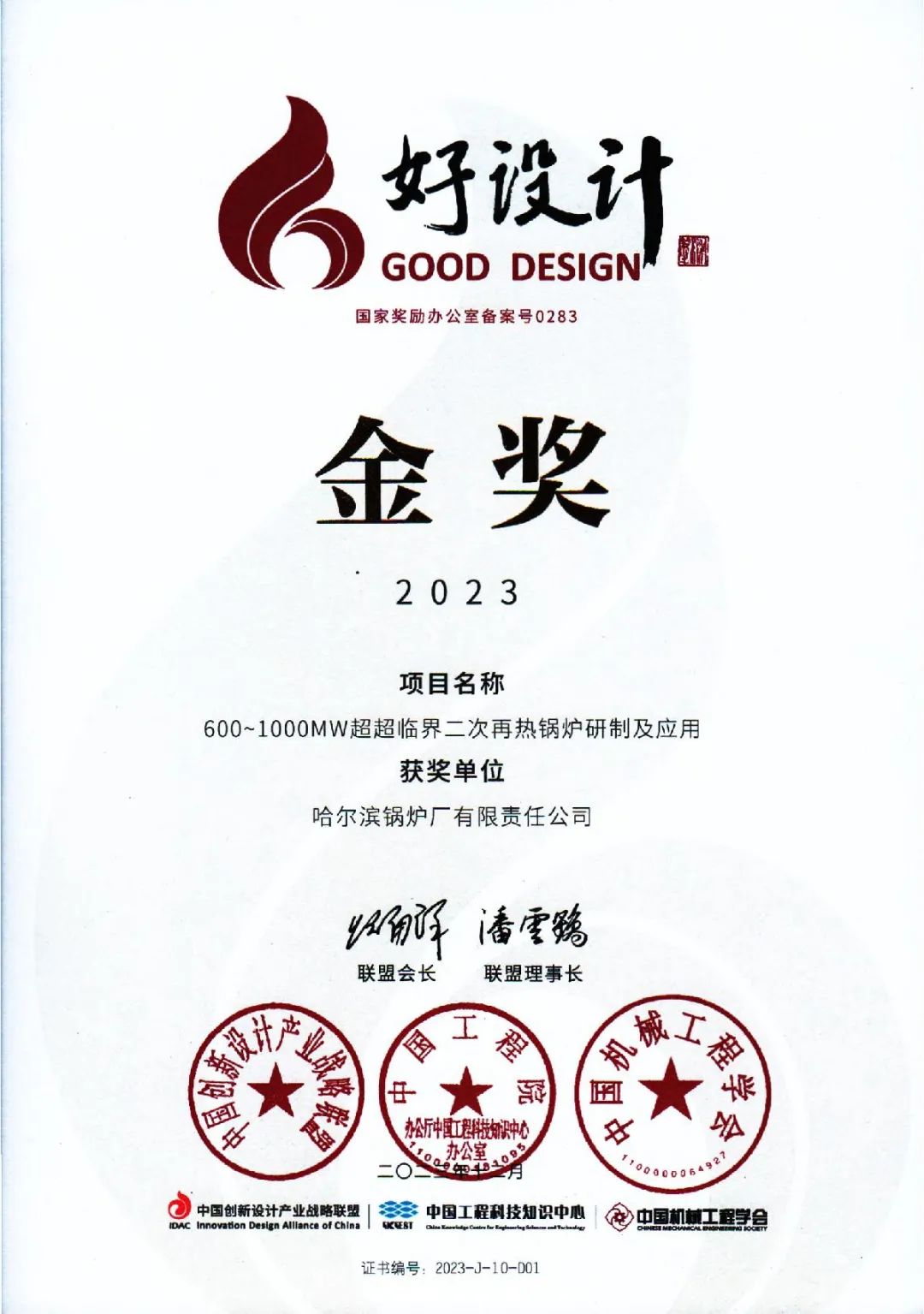 发布时间:2023-12-04日前,2023中国创新设计大会暨好设计颁奖大会公布了中国好设计金奖名单,哈电锅炉研发的“600-1000MW超超临界二次再热锅炉研制及应用”项目成功登榜。