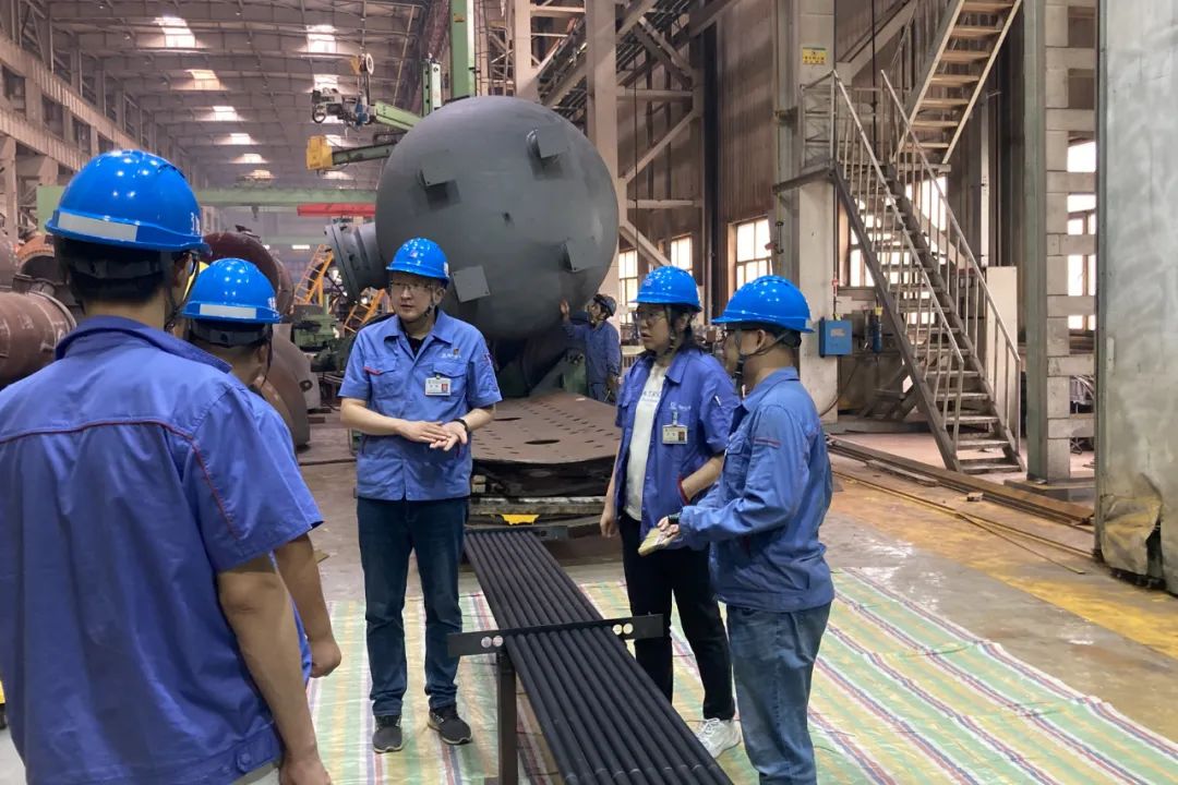 新疆庆华余热锅炉项目为国内首台应用于增压流化床气化炉配套余热锅炉,作为余热回收的全新工艺装置,余热锅炉用材和结构特殊,设备长度及吨位较大,结构复杂。核化容器工艺室党员突击队窦炳程、杜国珠、罗振洋、苏朗等人进行产品的生产服务,重点跟踪折流板加工、管板加工、管子-管板胀接、各部件总装、高温段与过热段总装等生产流程。根据实际生产情况及整体进度,及时优化工艺方案,为后续产品提供经验。