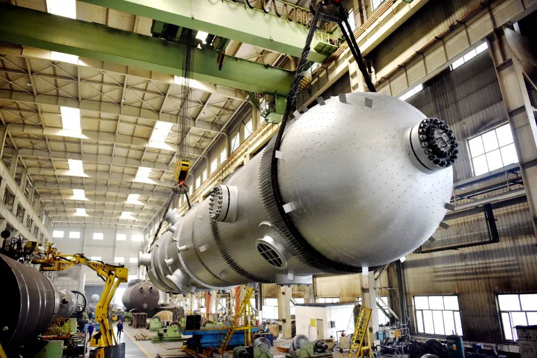 作为由哈电锅炉承接的苏联援建我国156个项目中2项之一,压力容器同样是哈电锅炉重要传统业务板块。哈电锅炉在压力容器领域不断地开拓创新、久久为功,市场开发工作稳中有进,签订内蒙古汇能煤制气项目和戴维甲醇合成塔设备供货合同是哈电锅炉技术储备和创新实力的最好印证。其中,内蒙古汇能煤制气项目气化炉日投煤量达到3000吨,投产时,是当时世界上投煤量最大的四喷嘴气化炉;戴维甲醇合成塔类型产品以前全部依靠进口,哈电锅炉通过过硬的技术成功实现了首批国产化替代,打破了国内市场对国外公司产品的长期依赖。除此之外,哈电锅炉在核电常规岛产品上实现了我国现有核电堆型全覆盖,储能、石油炼化市场均实现了重大突破。