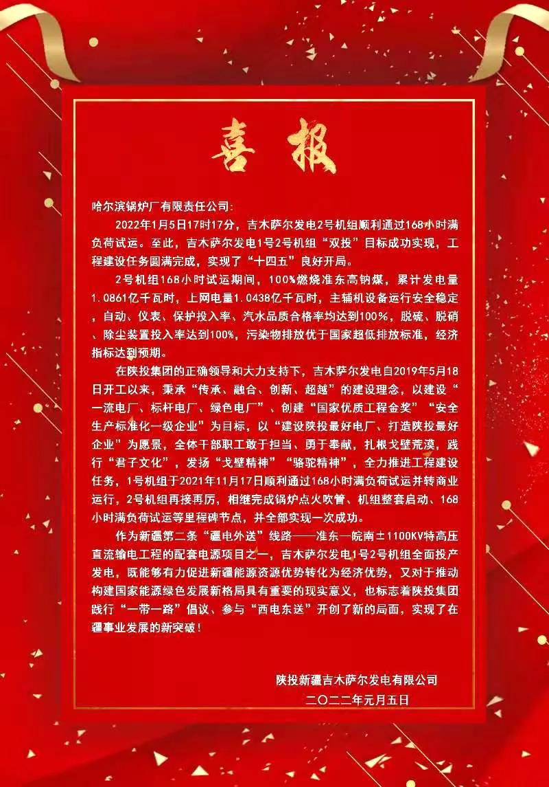【开门红】新年首投!哈电锅炉承制超超临界锅炉机组顺利投入商业运行