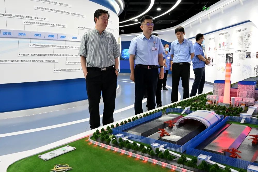 座谈会前,朱宏一行参观了哈电锅炉展厅、高效清洁燃煤电站锅炉国家重点实验室,以及生产分厂。
