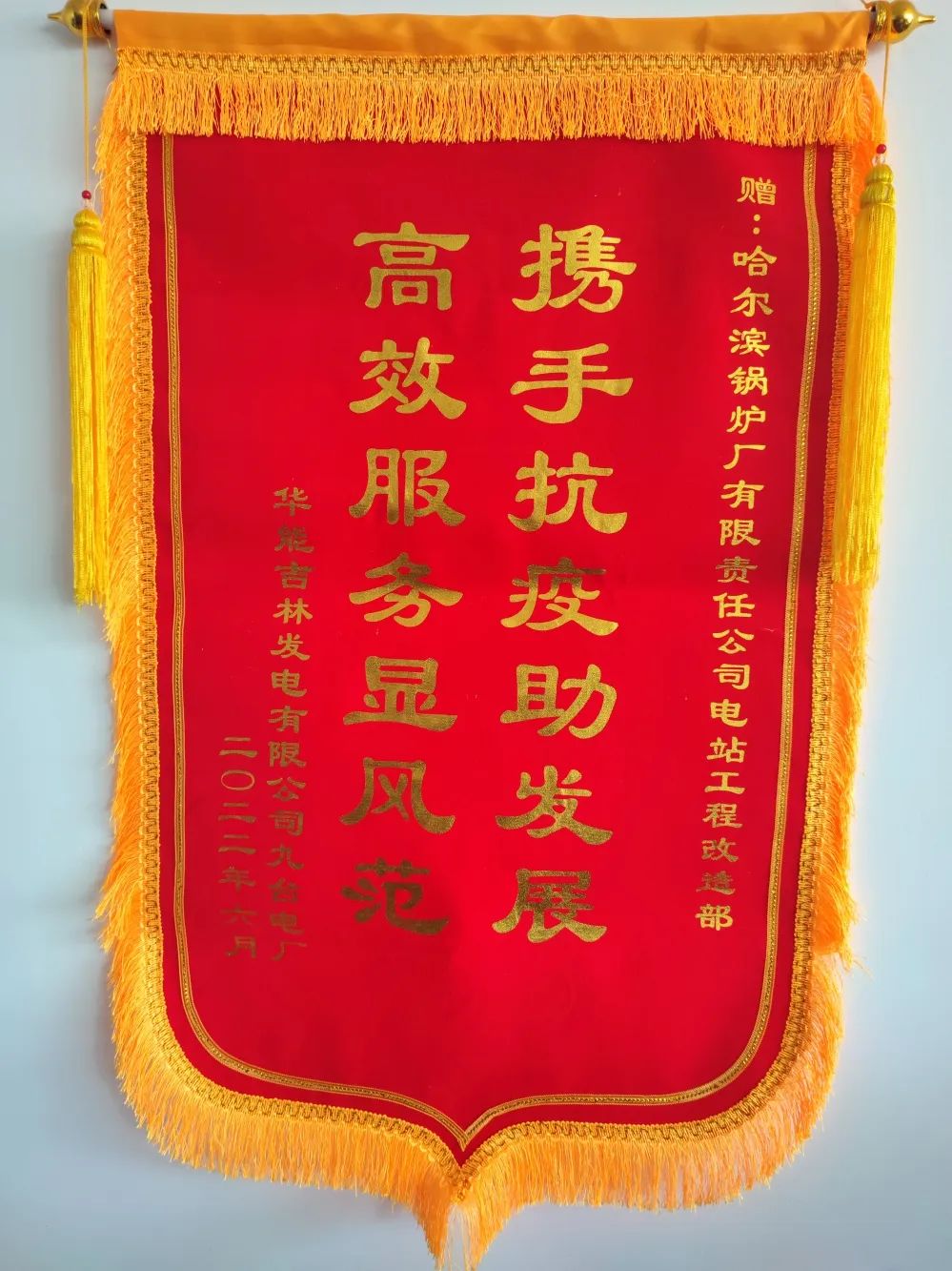 哈电锅炉各部门以用户需求为导向,在项目启动后,工程设计中心、生产管理部、物资保障部、水冷壁分厂,以及管子分厂等有关部门,迅速行动,积极投入到部件的供货工作中。各部门工作人员连续加班加点工作,推动各项工作落实。受当时哈市疫情影响,部分人员居家办公,产品油漆、包装、发运等环节工作也受到了一定程度的影响。各部门急用户之所急,全面梳理工作“堵点”,加强工作沟通、策划,通力合作推动后续各环节工作实现了无缝衔接。最终,哈电锅炉仅用时37天就完成了全部部件的供货工作,较常规供货周期缩短了近8天的时间,以实际行动确保电厂检修工作顺利完成。用户专门送来的锦旗上写着:“高效服务显风范,携手抗疫助发展。”这是对哈电锅炉最大的认可。