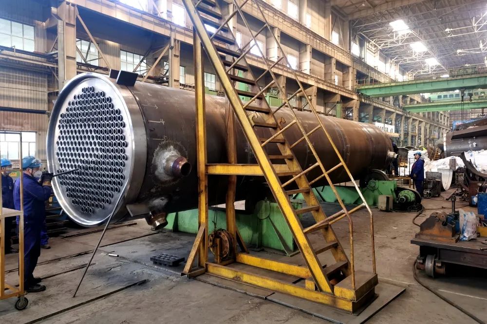 湖北晋控项目是公司重点石化项目,轻容分厂承制的废热回收器设备是该项目的重要设备。该设备的主要功能是与气化炉、灰锁、煤锁等设备配合进行鲁奇式碎煤气化,其结构较为复杂,生产制造难度较大。在设备生产制造前,由分厂技术厂长、技术人员、高级技师组成的团队,先后四次组织产品技术准备专题会,让项目参与人员充分了解了设备制造难点,掌握了关键工序操作要点。团队还广泛征集了分厂广大职工关于提升该设备生产质效的意见和建议,并归纳总结出许多生产“好点子”。比如:将设备管束组件先装配成整体再套装进壳体内,如此能够有效避免在狭窄空间进行焊接、胀管等工序;在内筒与外壳的夹腔中增加预焊件,既能避免管束套装过程中内外筒相对窜动,又能起到外筒对内筒的支撑作用,确保生产制造过程中设备在结构上的稳定性……这些“好点子”被充分应用到生产制造中,进一步提升了生产效率。同时,在生产制造过程中,计划员结合生产实际科学调整排产计划,工长合理调配人力和设备资源,一线操作者白班夜班接力作业。在大家的共同努力下,前两台废热回收器设备已顺利产成发运,第三台设备即将产成,其余两台设备也进入到快节奏的生产制造当中。